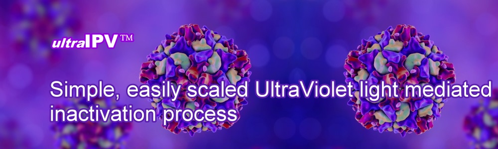 ultraIPV™ is produced using the attenuated Sabin strains which reduces safety and security concerns. The inactivation process uses ultraviolet light which appears to be less damaging to the immunogenic surface features of the virus. The process is rapid (less than a minute compared with 2-4 weeks for formalin-inactivation) and requires less downstream processing that IPV. ultraIPV™ stimulates high titers of virus-neutralizing antibodies in animal models.